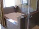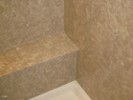 | Wall panels custom manufactured to provide seamless application in nearly any tub or shower configuration, including tub decks, benches, shelves, and window sills |
